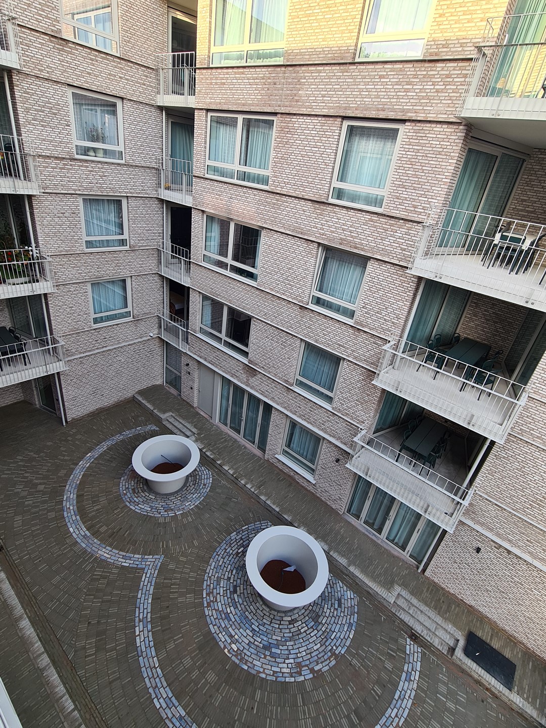 Begane grond: toegang middels hek met poort, bellentableau bij het hek met brievenbussen. Door het hek loopt u over de gemeenschappelijke binnenplaats naar de entree van het pand. Daar vindt u ook de gemeenschappelijke fietsenberging. Na de entree gaat u naar de tweede etage middel de lift of trap.