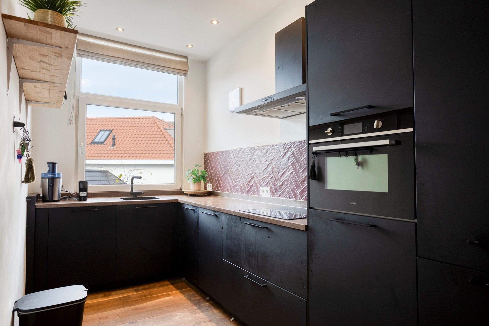 Binnen valt meteen de fraai afgewerkte zwarte keuken op – strak, modern en klaar voor fijne kooksessies. De volledig houten parketvloer loopt als een basis door de hele woning, wat zorgt voor een stijlvolle, samenhangende look. De ruime badkamer met bad en douche voelt als een mini-spa: alles wat je nodig hebt voor een ontspannen start of afsluiting van de dag.
